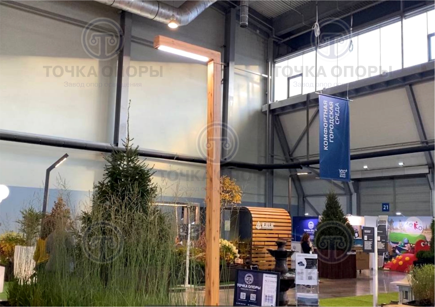 Особый интерес у посетителей вызвала декоративная опора в покрытии, имитирующем дерево – в ходе мероприятия были получены заказы на поставку.